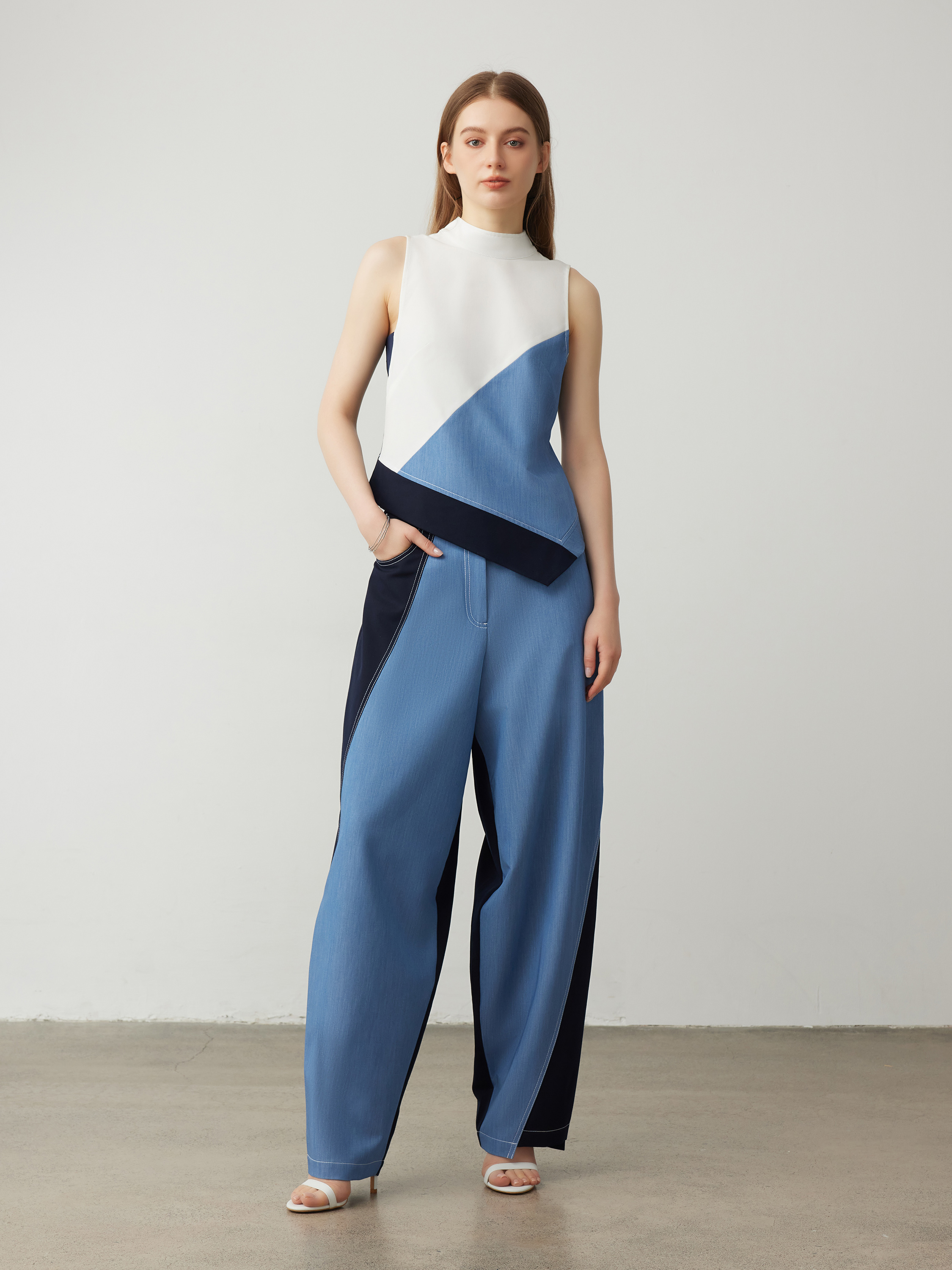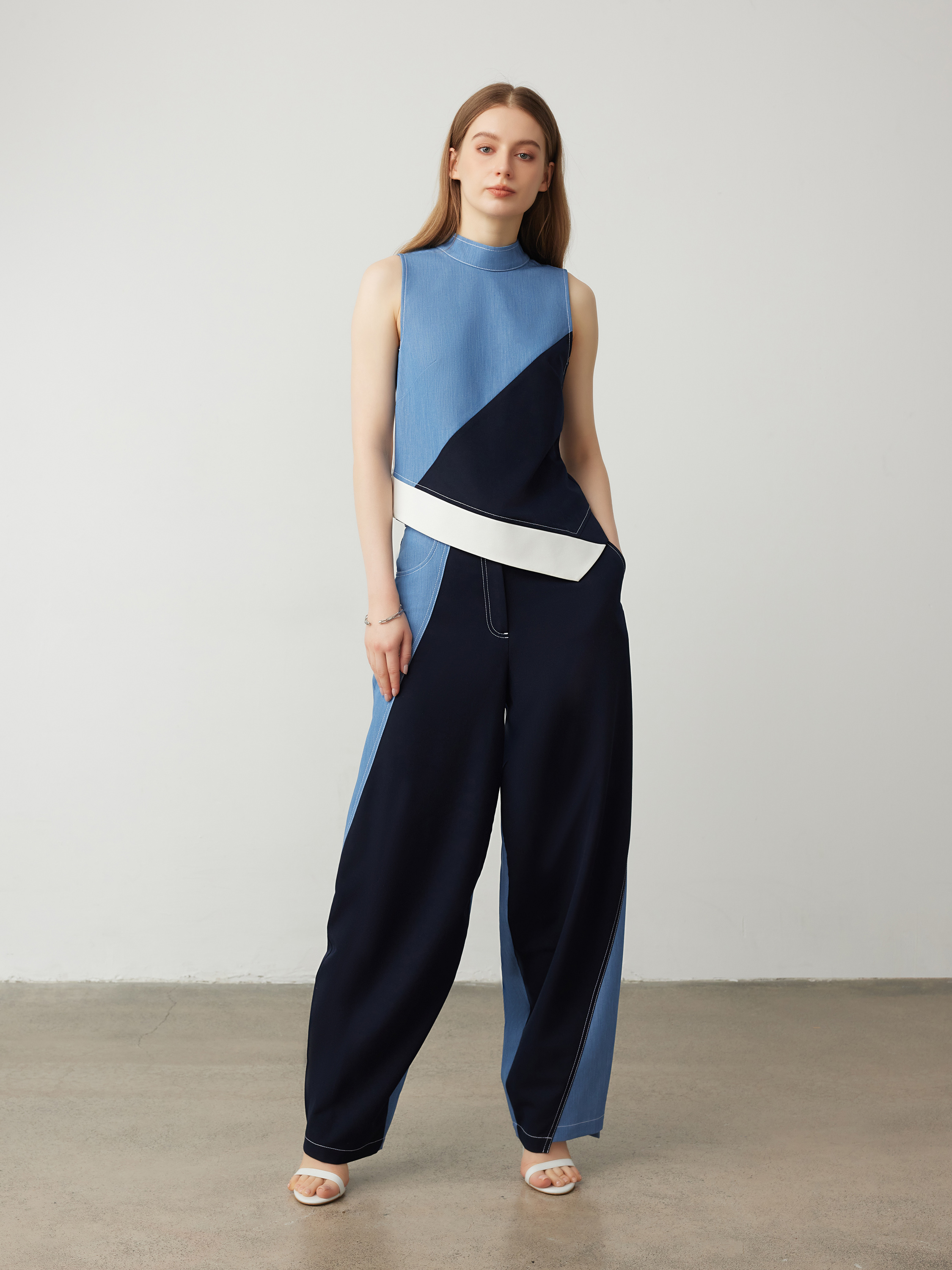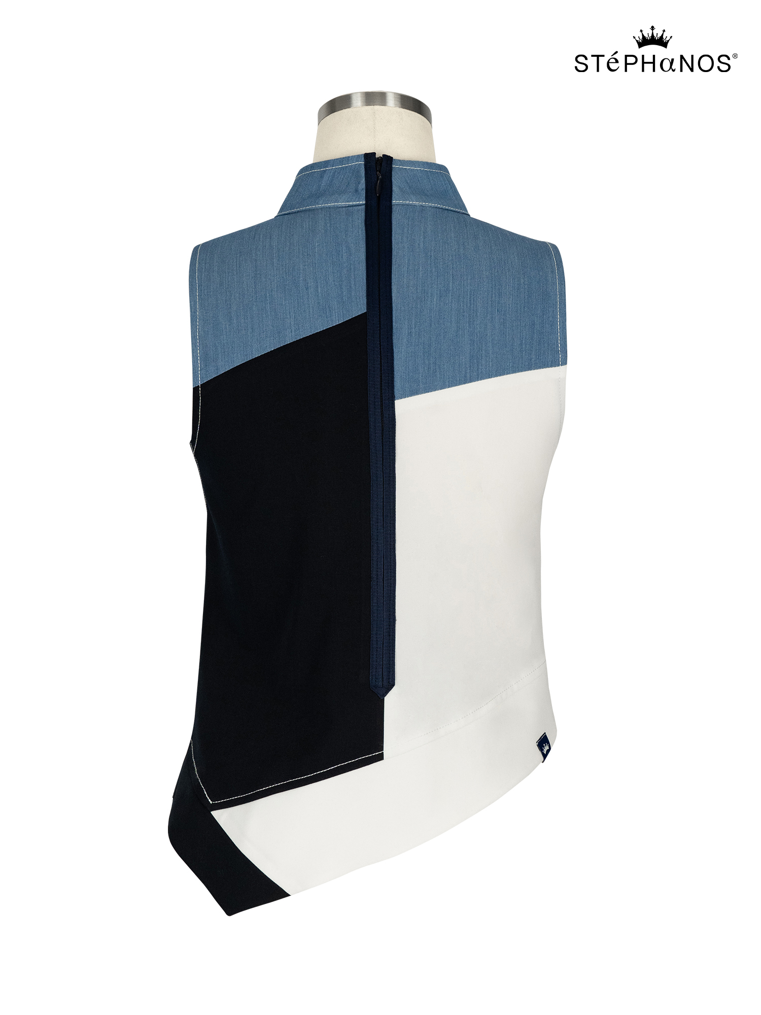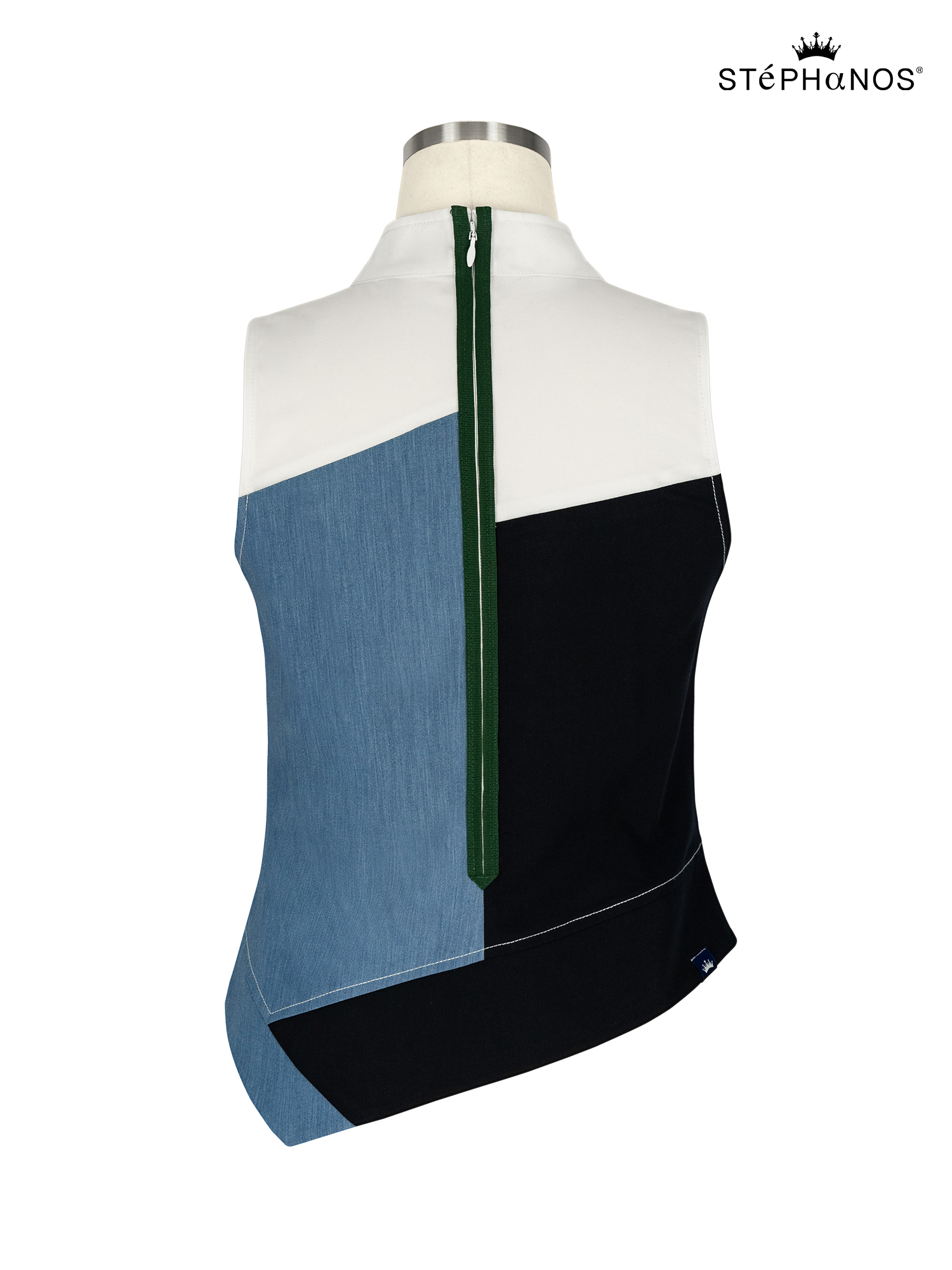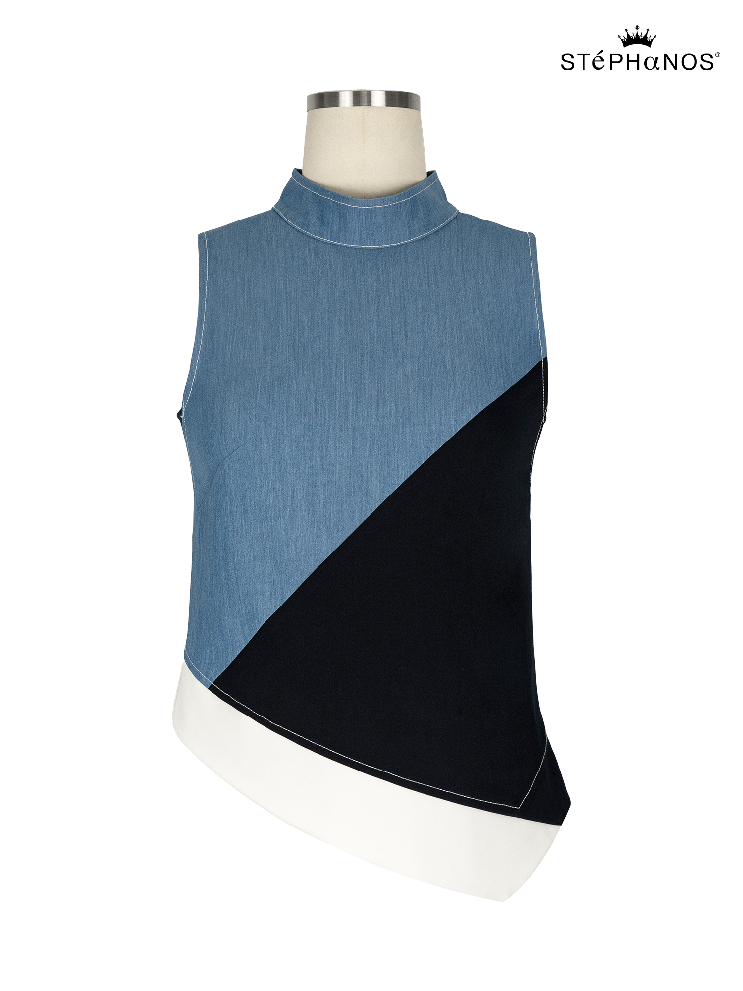Ladies' 85% Polyester 11% Rayon 4% Spandex Woven Color Blocked Top