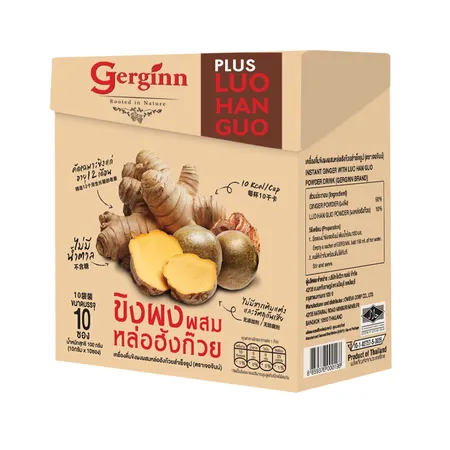 Gerginn Instant Ginger with Monk Fruit – A healthy blend of ginger and natural monk fruit sweetness. Zero sugar, low calories, supports digestion, boosts immunity, and warms the body. Convenient sachets, easy to prepare, with advanced extraction technology for a smooth and natural taste. Each box contains 10 sachets.