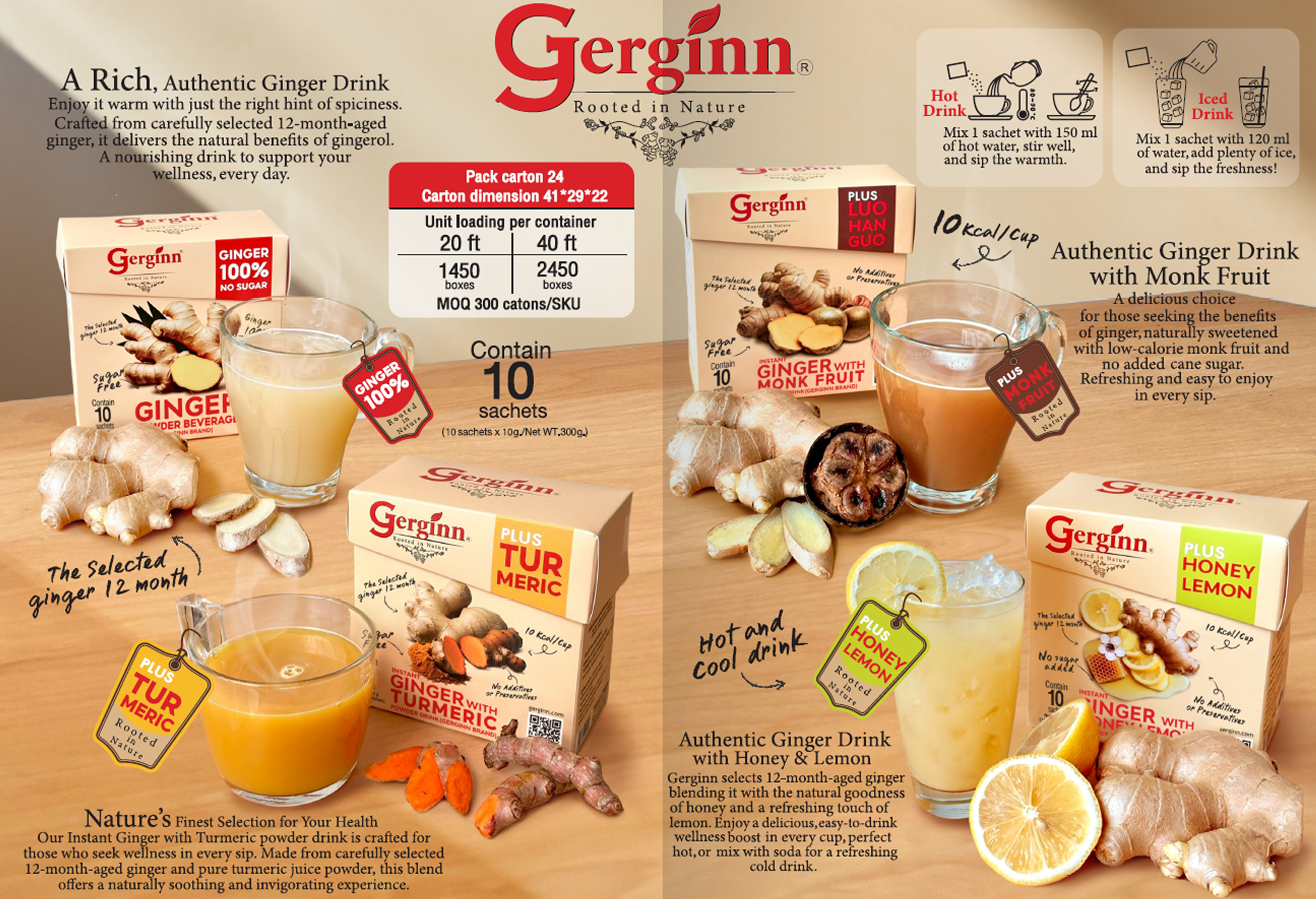 Gerginn Instant Ginger with Lemon Honey – A naturally powerful blend of ginger, lemon, and honey extract. No sugar, rich in antioxidants, supports immunity, aids digestion, and offers a deliciously refreshing taste. Perfect for today’s health-conscious market.