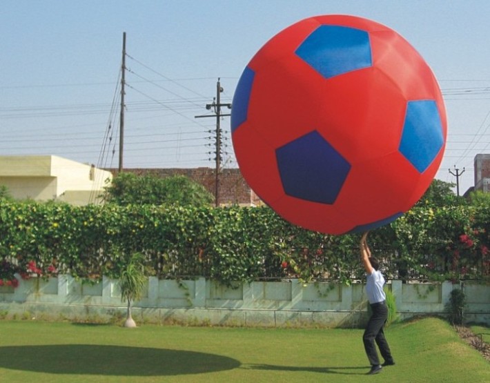 We manufacture soccer balls made of nylon cover & latex bladder up to the size of 84" diameter. These are made of heavy duty strong fabric and with durable latex bladder, faster to inflate and deflate.