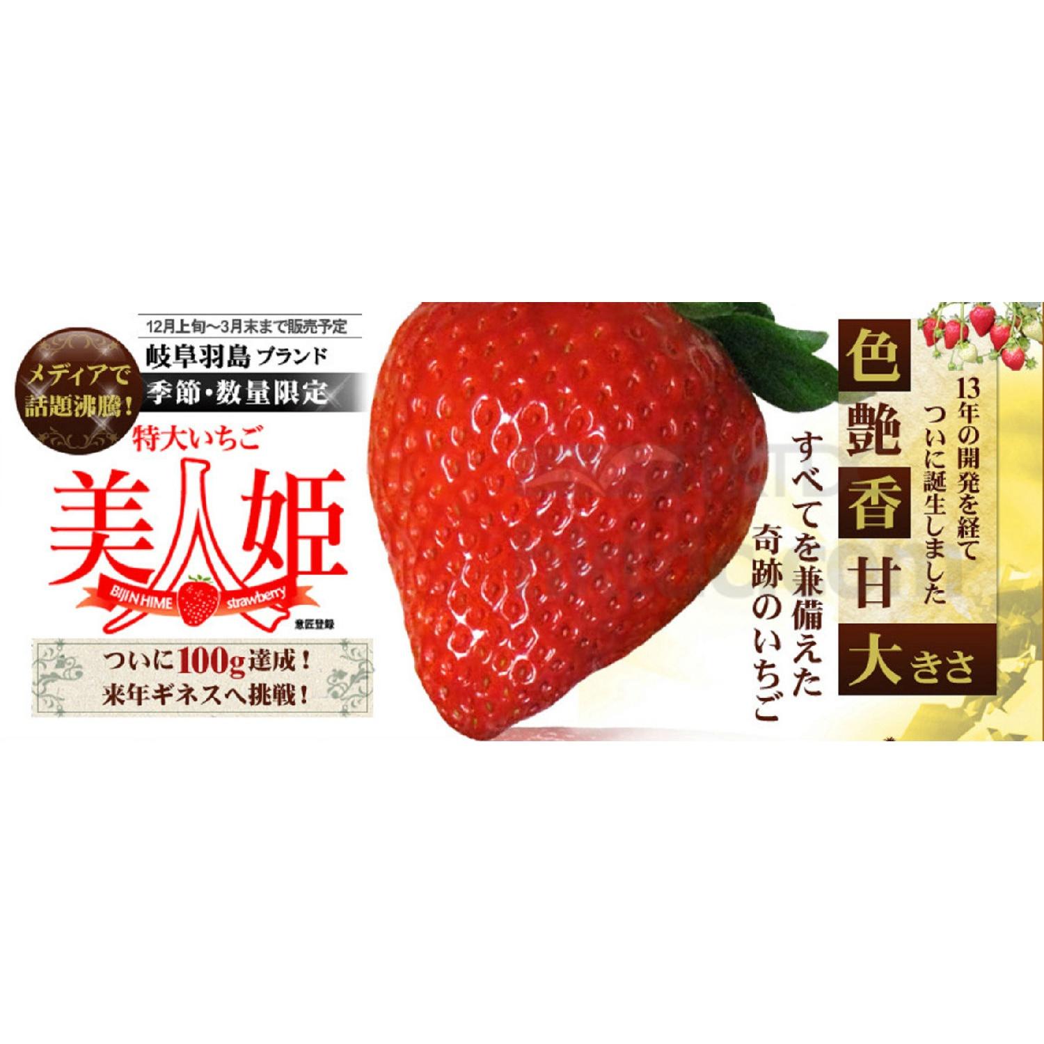 岐阜奥田农园的 美人姬是集色香味于一体,单个可以超过100克重的世界绝无仅有的草莓,一年超过100克的只有1000个左右,主要供给世界各国的皇室和贵族。
