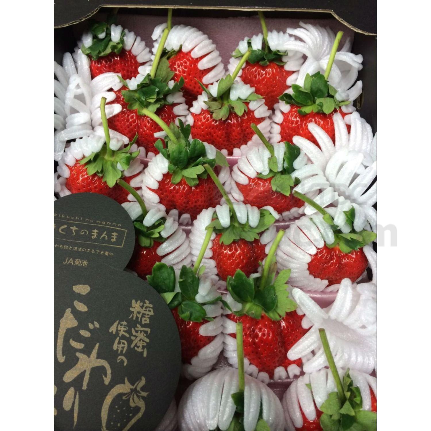 Showcased here is a variety of strawberry named Bijinhime, meaning beautiful princess in Japanese. Raised in the fertile soil from Hashima-shi located between Kiso River and Nagar River, this fruit is famous not only because of the giant size but also their color, luster, scent and sweetness. Other than eating alone, it is also great to add them to various desserts like mochi, strawberry cake or fruit sandwich.