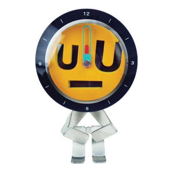 Featuring a creative twist, this desk clock comes in the form of a mini man figure. The yellow dial with a black rim represents the face of the figure, while the legs of the figure serve as a stable stand of the clock. With a two-hand design, this analogue clock can feature other facial expressions that suit your taste.