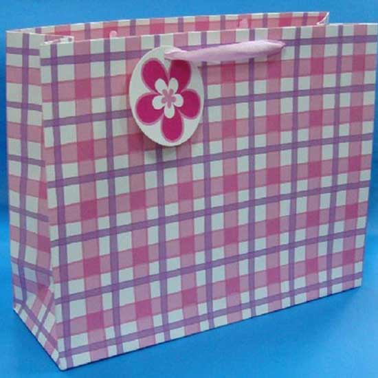 This lovely gift bag showcases pink-toned checkerboard patterns. It is perfect for packaging all types of small gifts for girls and young ladies. The ribbon handles complete the style of beautiful this gift bag.