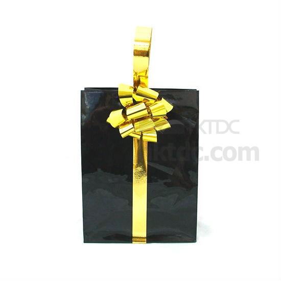 - Black bag with metallic gold bow & metallic gold ribbon handle.