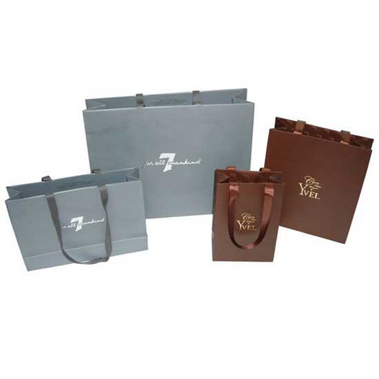 Displayed is a series of gift bags that flaunts an elegant design. This series of gift bags is made of high-quality paper to provide excellent protection for the packaged items. The handles are made of silk ribbon, showcasing a sense of refinement. This series of gift bags is an ideal choice for gift packaging.