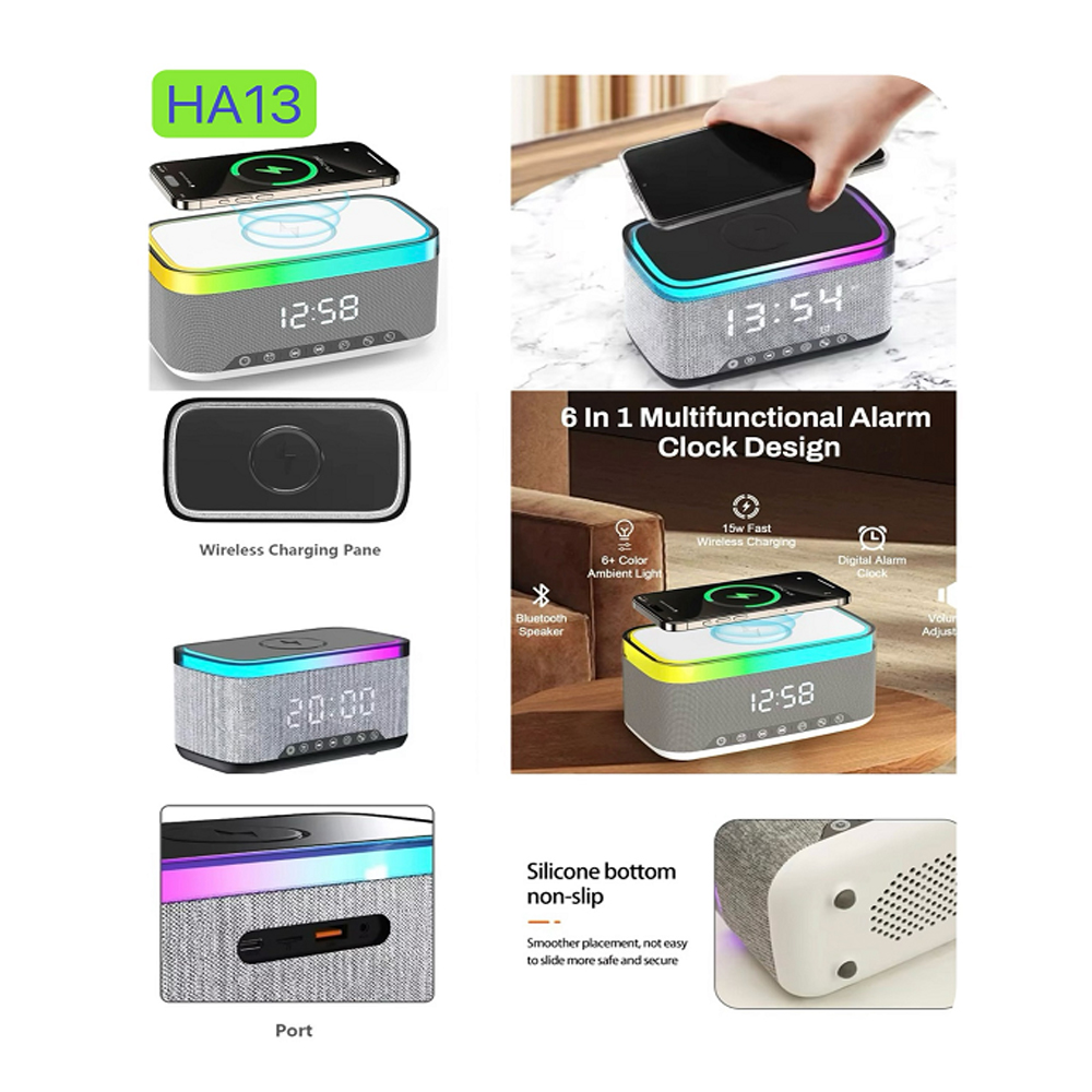 2. 6-in-1 Multifunctional Design: You can get Bluetooth Speaker+FM Radio+Alarm Clock+Clock Display+15W Wireless Charger + Colorful adjustable night light.