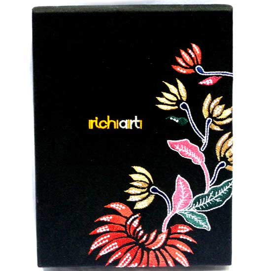 The featured embroidered gift box comes with contrasting tones. The black cover is embroidered with colorful floral patterns to hold all gaze. The gracefully designed box makes a perfect case for gifts.