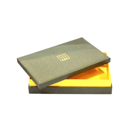 Displayed is a gift box that comes in a flat shape. After removing the gray cover, the yellow inside will reveal together with the gift, adding a touch of royalty. This high quality gift box is a nice choice for sure.