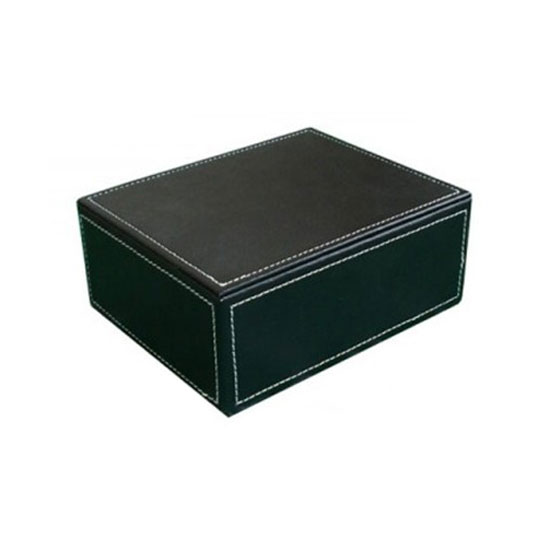 This is a gift box in dark green with exquisite white stitches. It comes with a simple and neat design in a rectangular shape. Made of high-quality leather material, this box will add a touch of elegance to your gift.