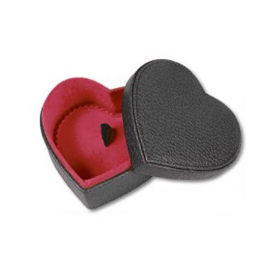 This is a gift box designed in a romantic heart shape. It features a red interior and a black exterior with a textured finish. This box is made of high-quality leather with excellent craftsmanship.