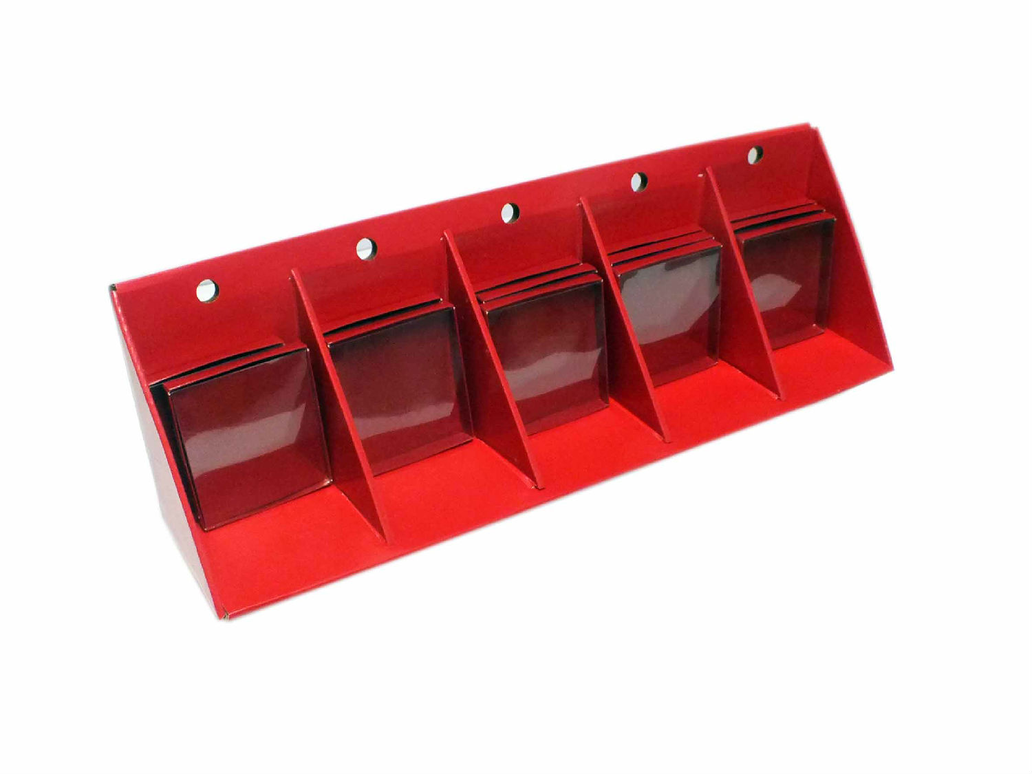 This series of gift boxes comes in compact rectangular design. The gift boxes can be placed on a glossy red tray for display. There are holes on top of the tray for easy hanging.