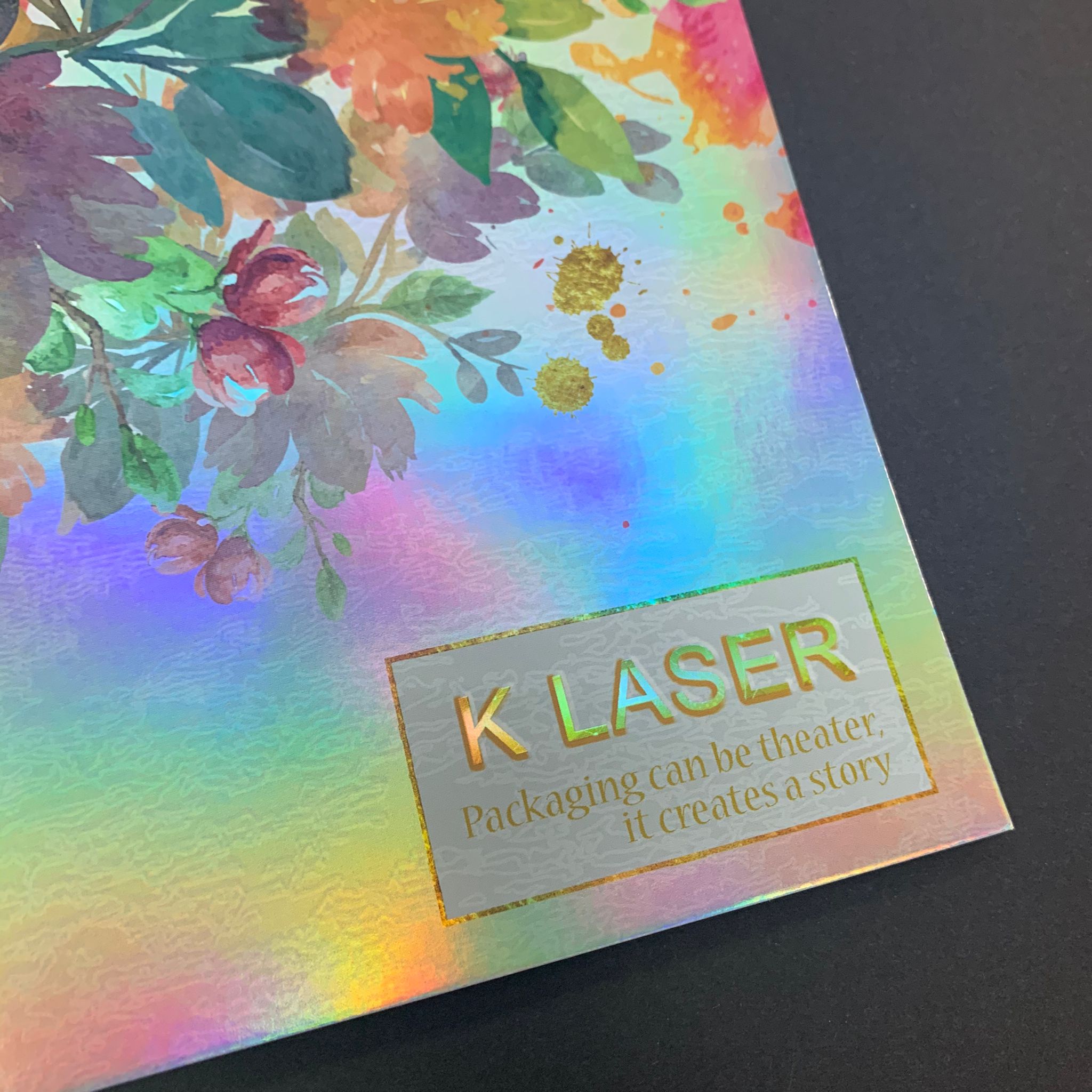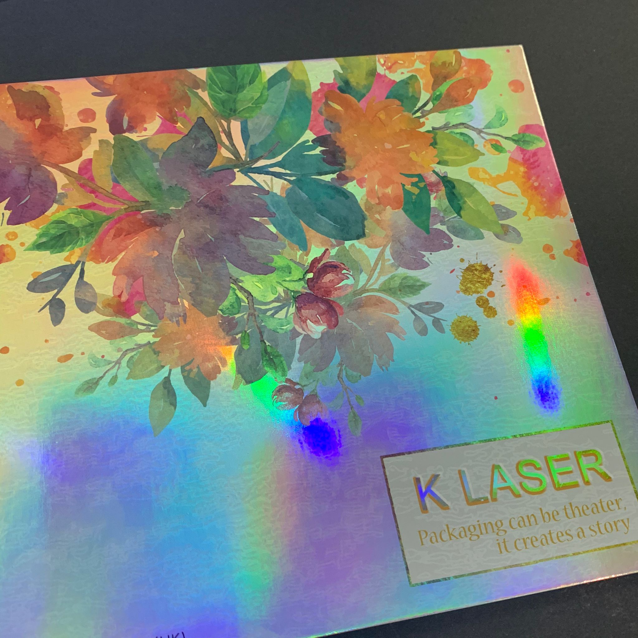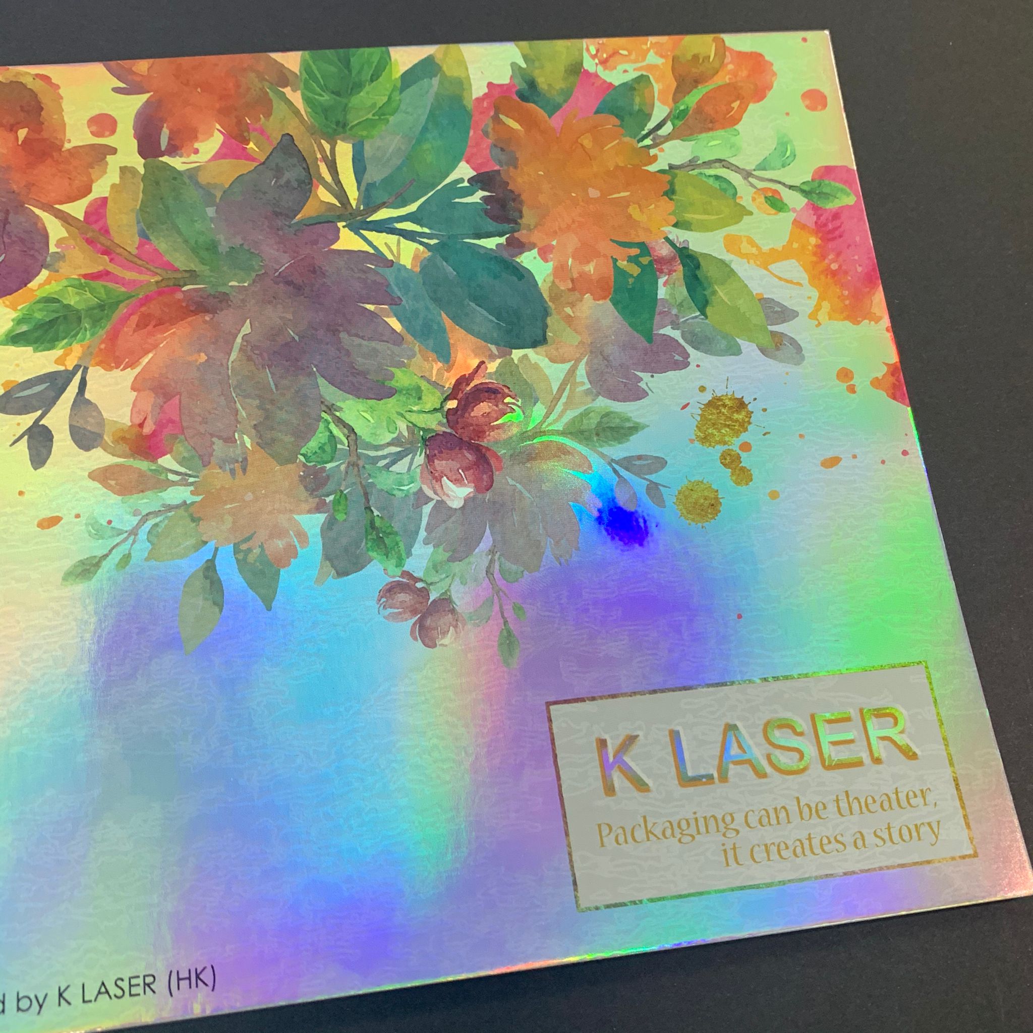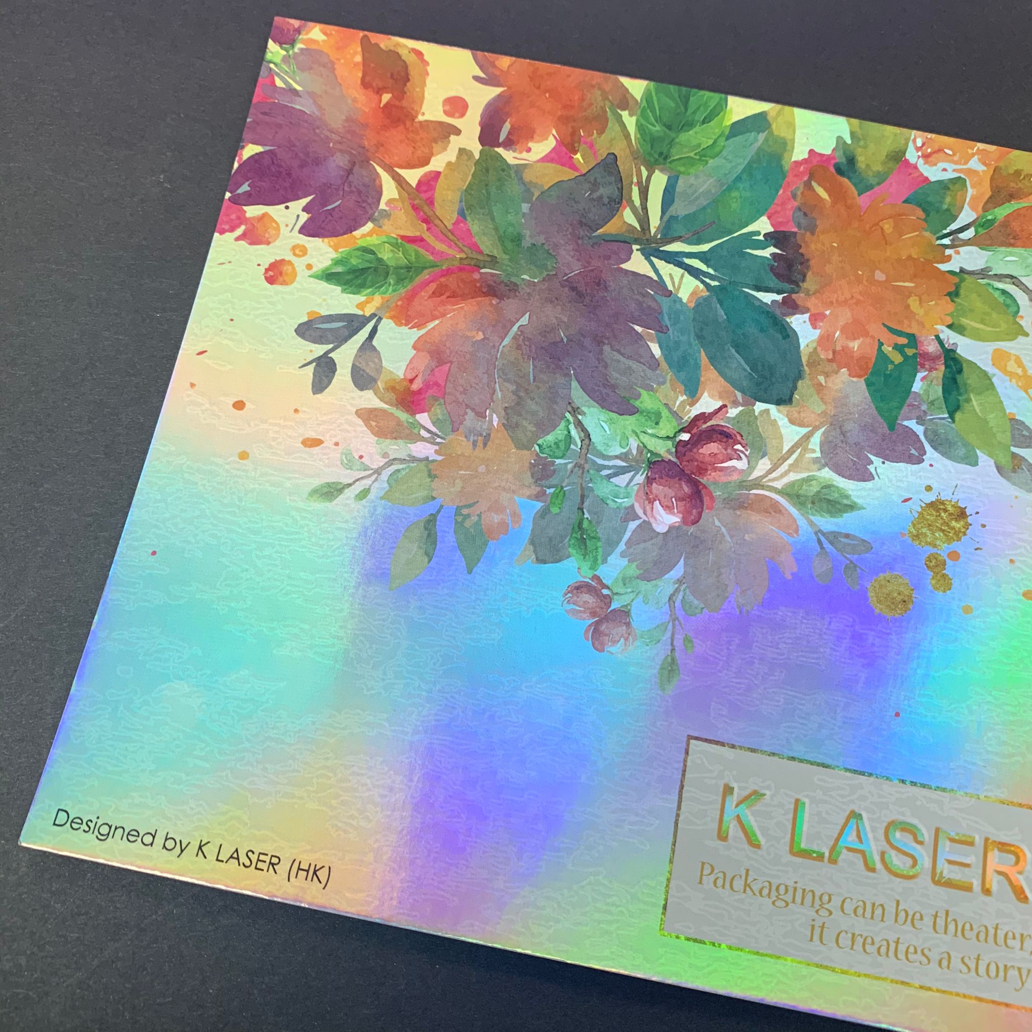 This is the card made by K Laser 100%True seamless PET Rainbow film and simple offset 4C + white printing.