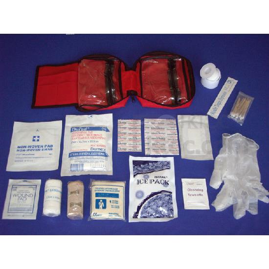 • Content: first aid list, adhesive bandage, alcohol prep pad, zinc oxide adhesive plaster, gauze pad, disposable glove, bandage, triangular bandage, stretch bandage, plastic tweezer, bandage scissor, safety pin.