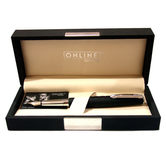 This gift fountain pen box set features a luxurious style. The beautiful fountain pen comes with a sleek and sophisticated design that delights any user. A choice between fountain pen and ballpoint pen is available too.
