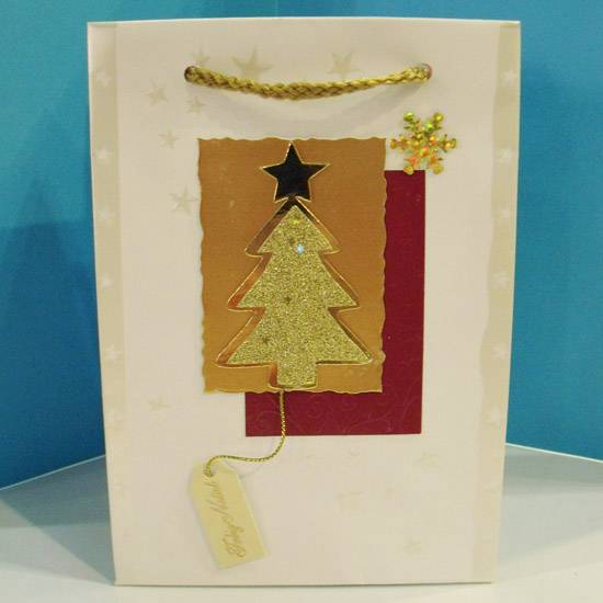 The gift paper bag features a sparkling 3D Christmas tree and a star. The twisted string offers extra durability and easy carrying. With its glittering and detailed finishing, this paper bag provides a perfect way to seal your gift with festive atmosphere.
