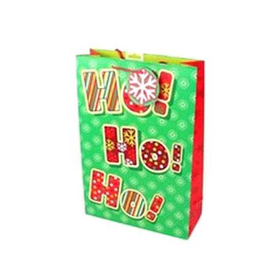This is a gift bag made of top grade paper for rugged construction. The snowflake embellishment is hung on the handle for a festive touch. It is ideal for a wide range of Christmas presents.