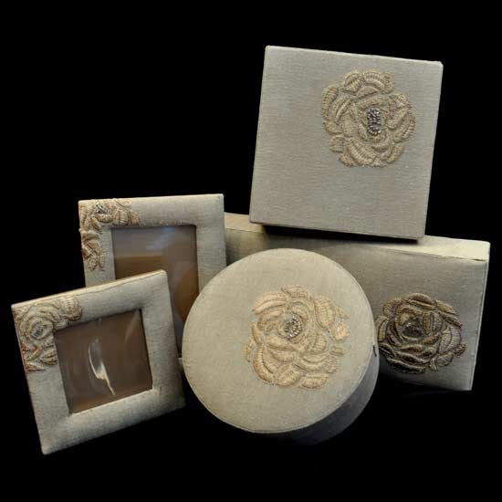 This set comprises three gift boxes and two photo frames. The floral patterns deliver a touch of elegance. The modern design makes the set stand above the rest.