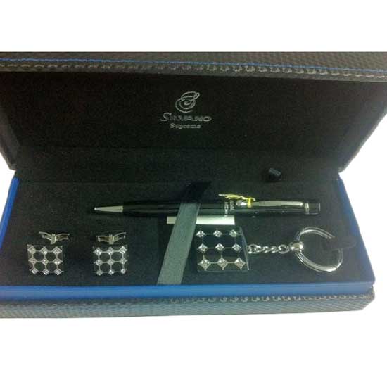 This deluxe gift set includes a sophisticated pen, a keychain and cufflinks in a matching style. They are all packed in a grand box to deliver maximize value. This dainty gift set is available in different colors.