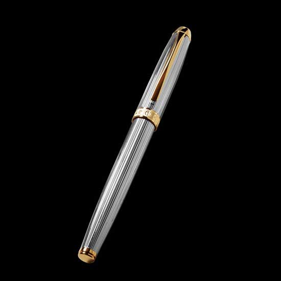 This tasteful roller pen features a rhodium-plated body with 22K gold trimming. It showcases excellent craftsmanship with refined details. The top-quality roller pen makes an excellent tool for documenting and record keeping.