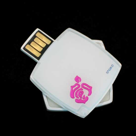 This gift USB disk boasts a sweet, girlish design to attract female users. It comes with a rotatable structure for releasing the connector. The beautiful rose pattern in pink adds unique style to this USB.
