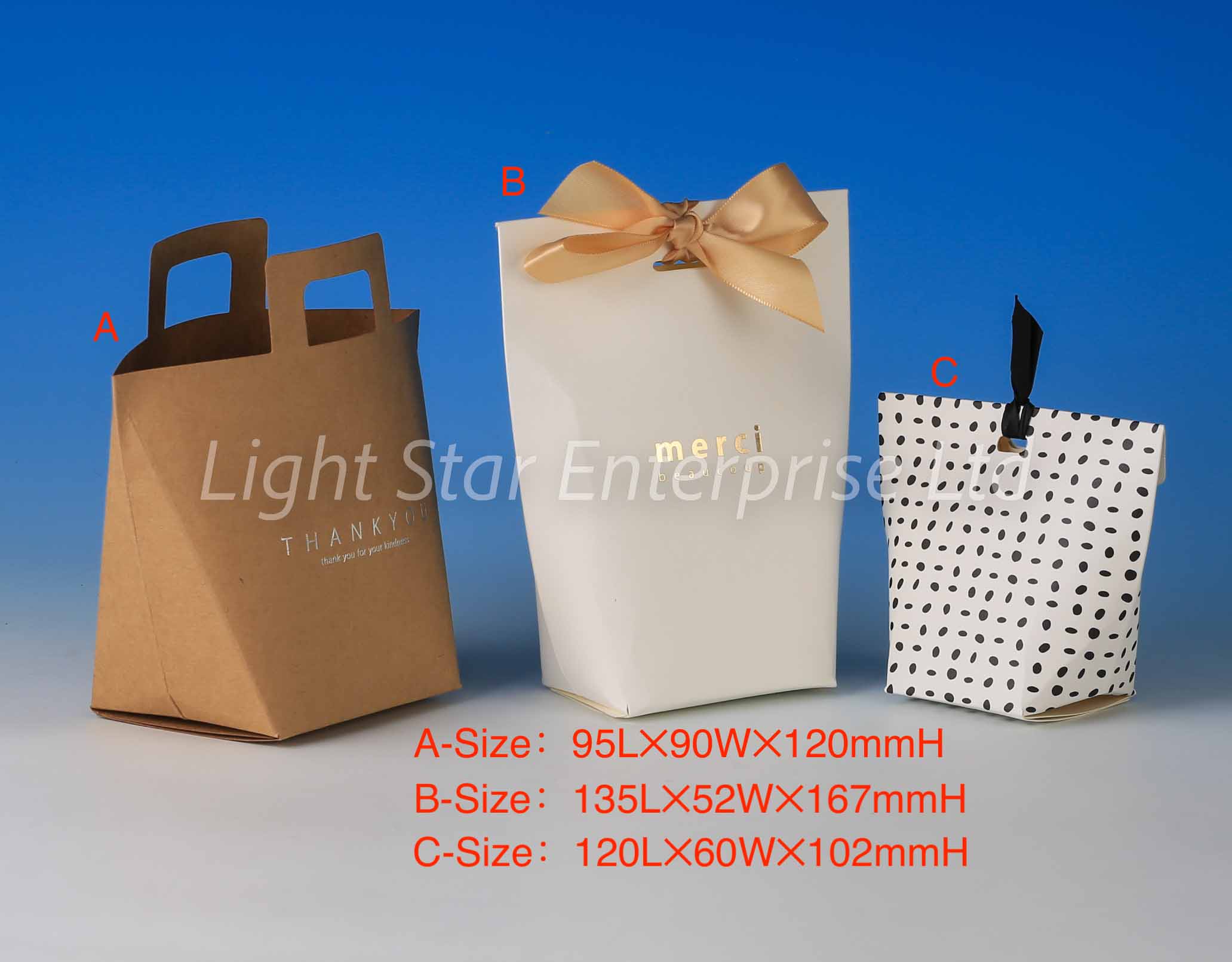 1.Paper bag material: Gloss/Matt art paper, Kraft paper, Brown Kraft paper, White beach Kraft paper, C1S/C2S