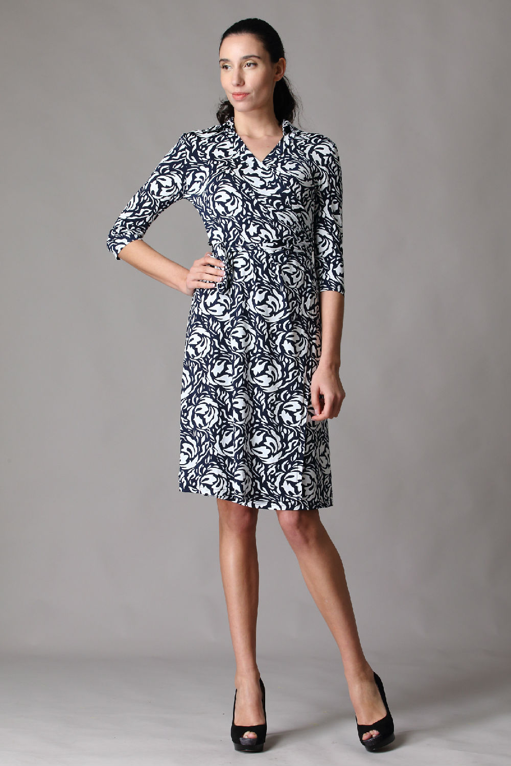 Gina Quarter Sleeve Collar Wrap Dress - LOVLIMBU