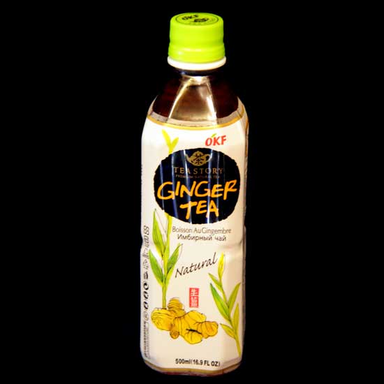 Outlined is a bottle of ginger tea that is made from natural Korean ginger for a better taste. The refreshing flavor with a hint of spice promotes healthy digestion. This flavorful ginger tea can be blended with milk to create Hong Kong-style ginger milk tea.