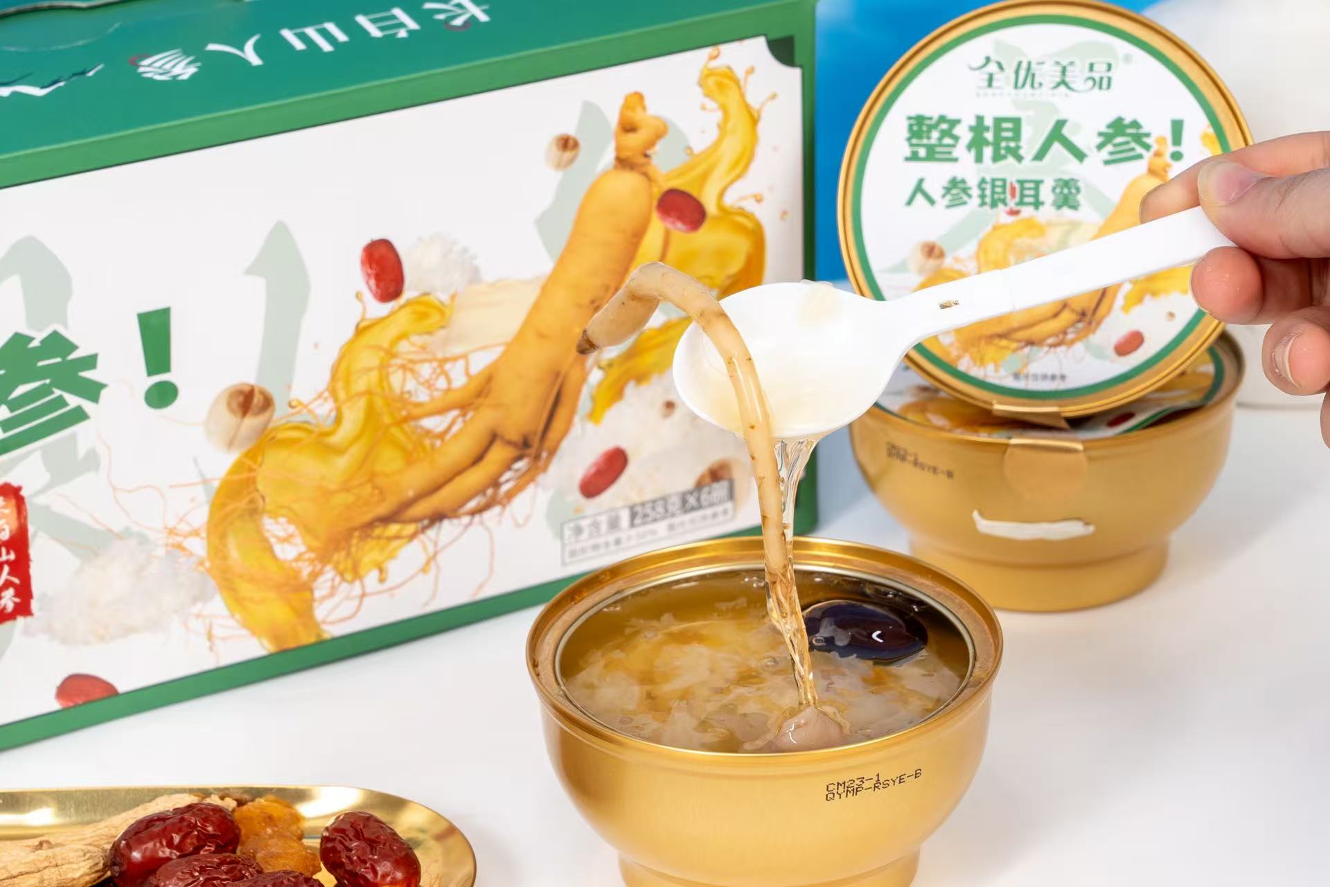 Ginseng Tremella Soup is a nourishing ready-to-eat dessert crafted with premium ginseng and white fungus. Known for enhancing vitality, supporting immunity, and promoting skin hydration, this low-sugar formula is ideal for wellness-focused consumers. Shelf-stable for 12 months with no preservatives or additives.