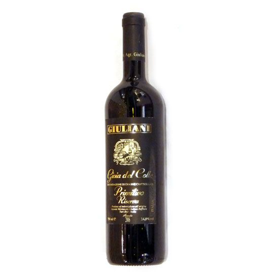 Made from quality Primitivo grapes, this Italian red wine has gone through prolonged maceration at the controlled temperature. It displays an intense ruby color with hints of mature fruit. The rich, harmonious wine is excellent with roast meat, wild game, mushrooms and aged cheese.