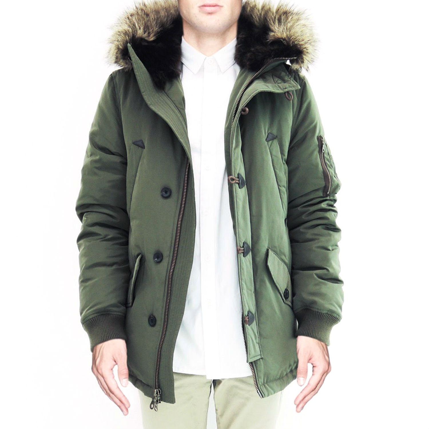 Get a rugged and versatile outwear in the upcoming winter. This high quality parka comes in a classic style and a fur trimmed hood. With hidden zip up closure and ribbed cuffs, you can be well-protected against strong wind. This coat is 90/10 down-filled, offering a warm wearing solution. With its simple yet stylish appearance, this parka works well when pairing with any kind of attires.