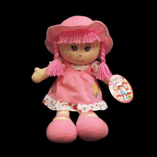 This lovely pink girl doll is a great companion for your children. The doll wears a cute dress with a matching hat. The stuffed doll is soft to touch.