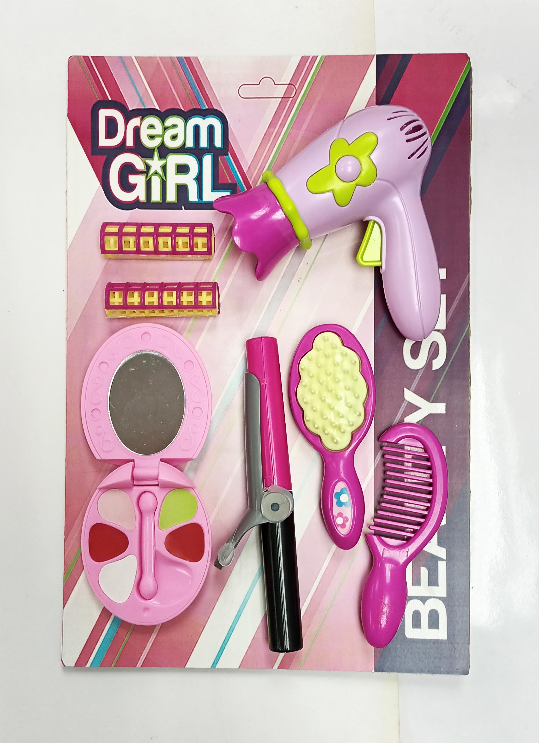 girl beauty set (with hair dry, comb + brush and cosmetic mirror and hair roll