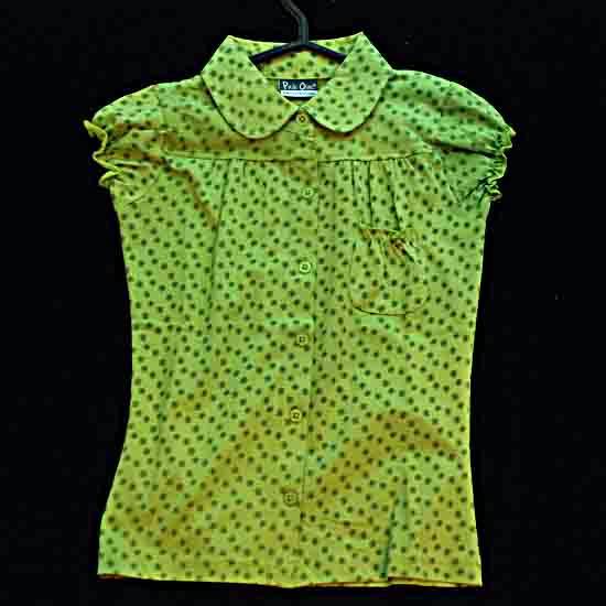 The admirable girls' blouse flaunts a vibrant green color complemented by allover polka dots, exuding a lovely flair that is simply irresistible. The cap sleeves and slim-fit design promise a gratifying fit while showing off a respectful look. The chest pocket makes an adorable final touch-up for the whole piece. Show off your little girl's cuteness with this summer blouse.