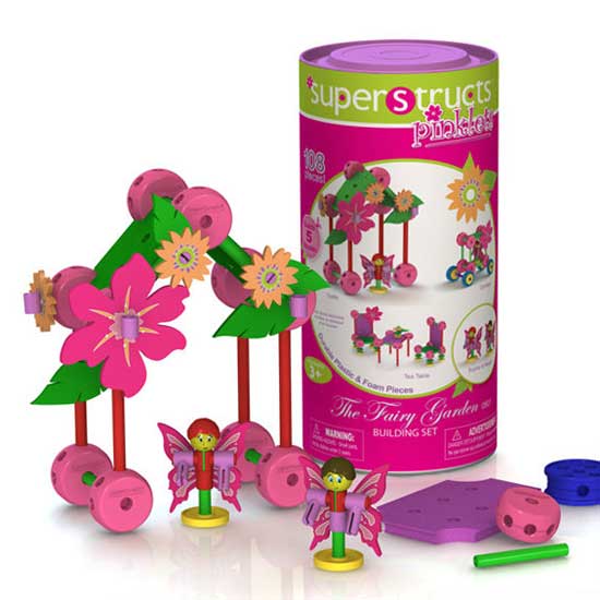 The magical world of Pinklets opens in a beautiful garden that young builders create themselves. The fairy garden theme includes plastic rods, connectors, wheels, decorative foam flowers, leaves and wings as well as an illustrated building guide. Built on the Superstructs building system, Pinklets allows for endless play possibilities and is retailers’ favorite set for the way girls build and play.