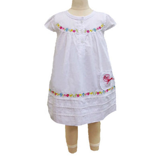 This lovely dress features the attractive floral embroideries and crochet lace trimmings for a touch of uniqueness. Made of 100% cotton material, this girl's dress ensures wearing comfort and pretty for your little ones.