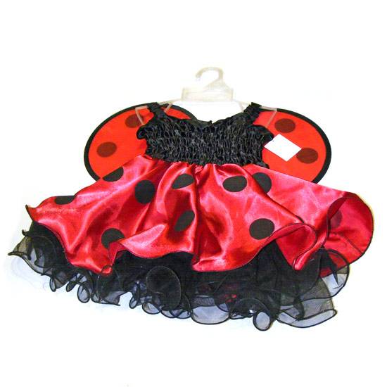 This is a dress for girl in black and red color and with a beetle style. It includes lovely beetle wings, satin shirred black top and red skirt. It is very suitable to be worn as a carnival costume or drama costume.