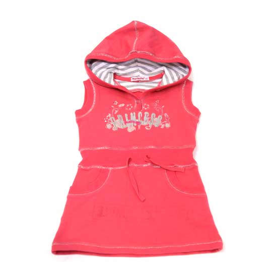 This pinkish dress for girls comes with a hood and a sleeveless design for a unique touch. It is fitted with a drawstring at the waist for wearers to adjust it to a comfortable fit. This stylish dress is fabricated from 95% cotton and 5% elastane.