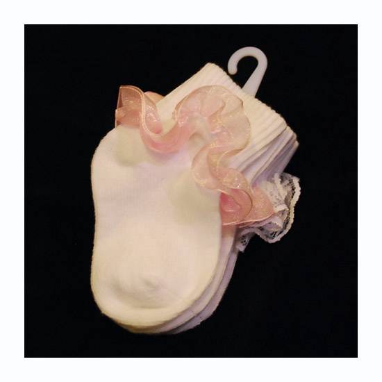 This pair of girls' socks features pink lace trimmings to create a touch of loveliness. The socks are made of quality cotton that provides ultra softness and luster for wearing. These socks are the perfect accessories for your beloved daughter.