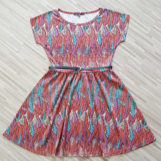 This is a girls' dress that is made of extremely soft and comfortable material that is ideal for children's delicate skin. It is designed with a classic round collar, short sleeves and a belted waist. Adorned with colorful printed details and subtle ruffles, this dress is a stylish option to complete your child's wardrobe.