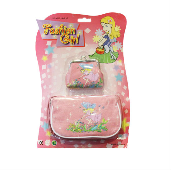 Pictured is a little gift set that includes a coin purse and a shoulder purse of matching designs. The cartoon images are sure to catch little girls’ attention. The denim composition gives a soft touch on the hands.