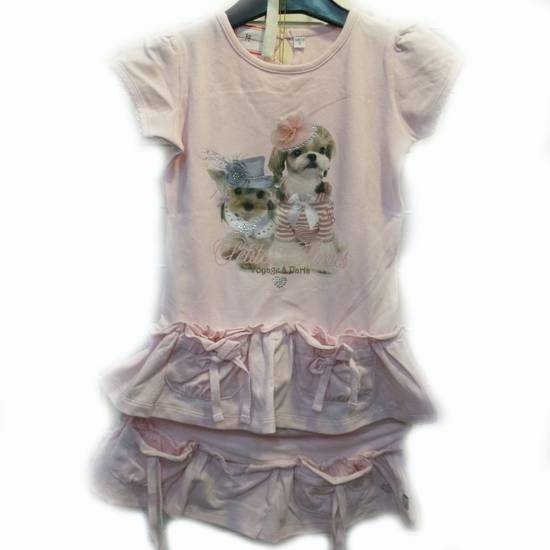 This lovely short-sleeve dress features a two-layer flared bottom. It has cute puppy print on the bodice with crystal-like embellishments. The dress comes with four pouch-like pockets with pre-tied bow decorations. This dress is perfect for your infant, toddler or little girl.
