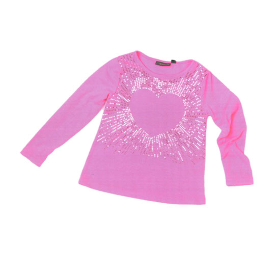 This is a girls’ T-shirt that comes in allover pink for a sense of vitality. The allover glitter decorations add a touch of glamor to the whole piece. This elegant T-shirt is finished with a classic round neckline and long sleeves.