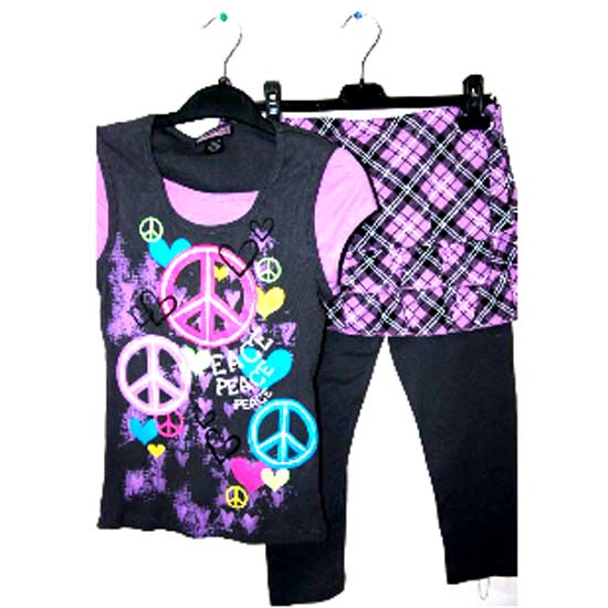 The girls' wear set features a short-sleeve printed shirt and a plaid skirt with a pair of tights. They are well designed in rock-and-roll style. Dress up for parties and carnivals with this fashionable wear set.