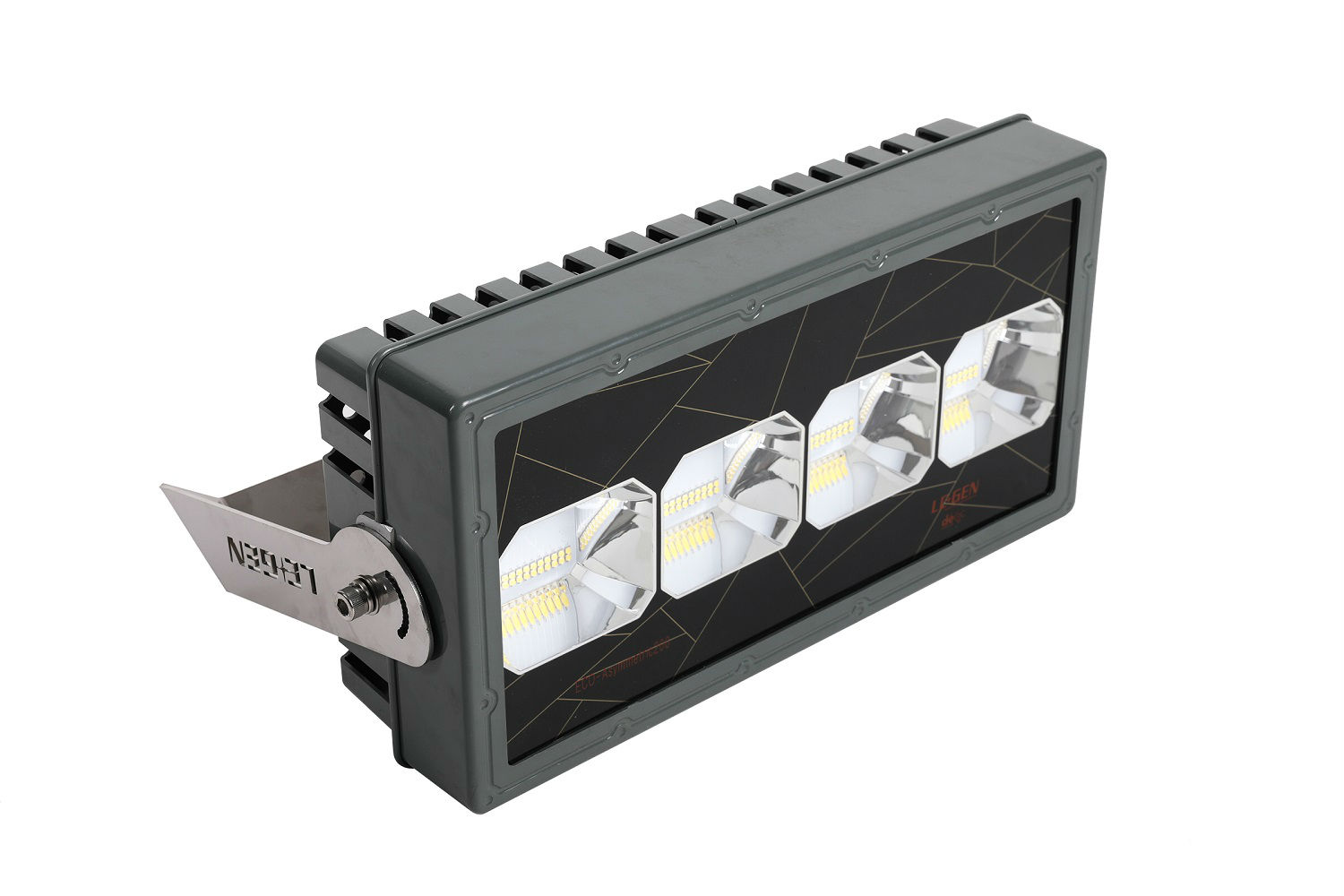 It's a reflector based full cut-off glare free LED Flood Light, glare-free for the user, with an asymmetric light distribution preventing scattered lights.
