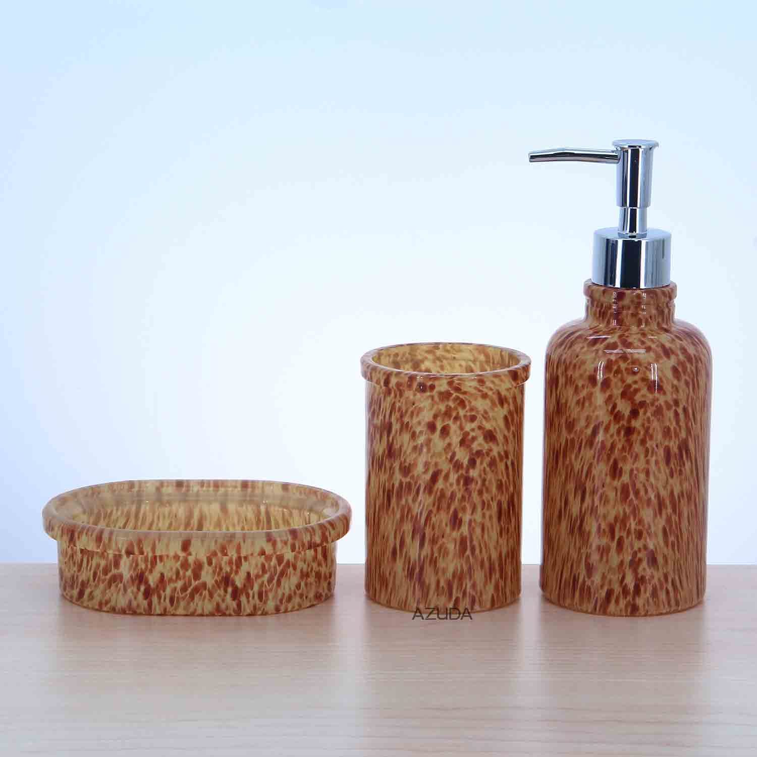 Glass Bathroom Accessories Set W/Tortoisesheel design