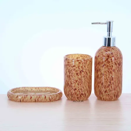 Glass Bathroom Accessories Set W/Tortoisesheel design