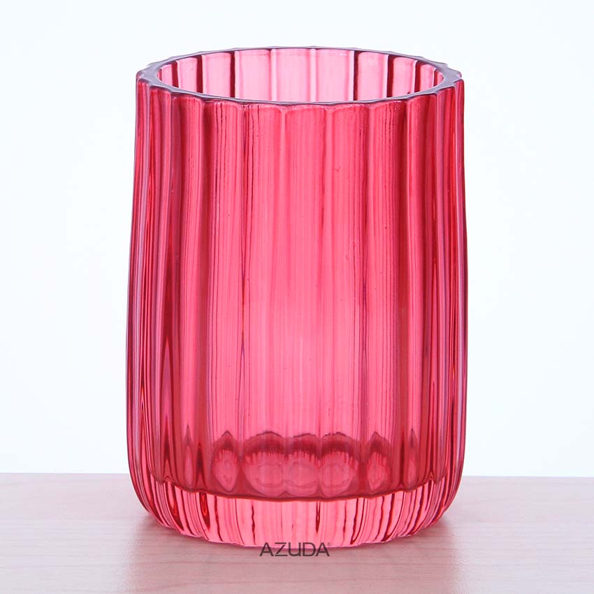 Glass Bathroom Accessories Set Fluted Design In Red