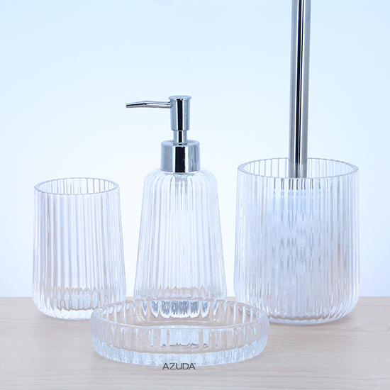 Glass Bathroom Accessories Set Fluted Design In Clear