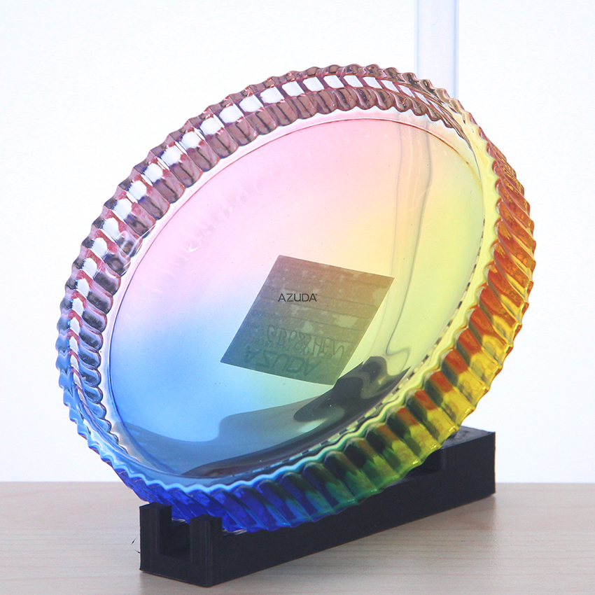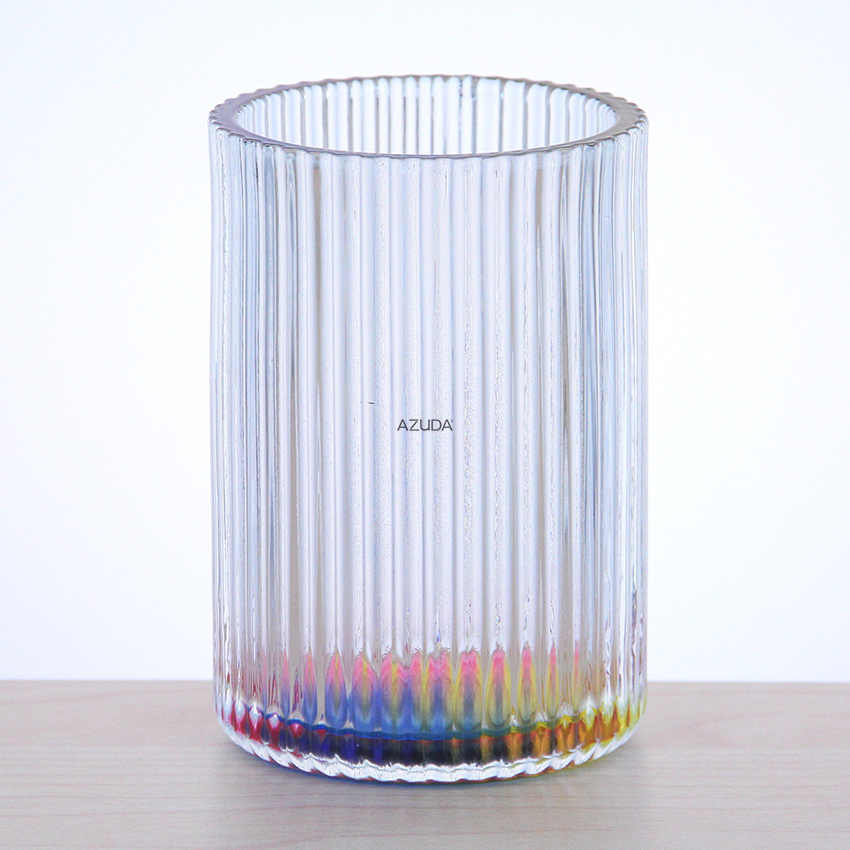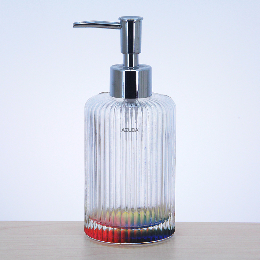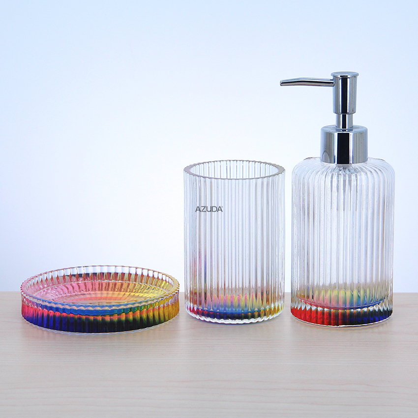 GLASS BATHROOM ACCESSORIES SET RIBBED DESIGN W/RAINBOW COLOR